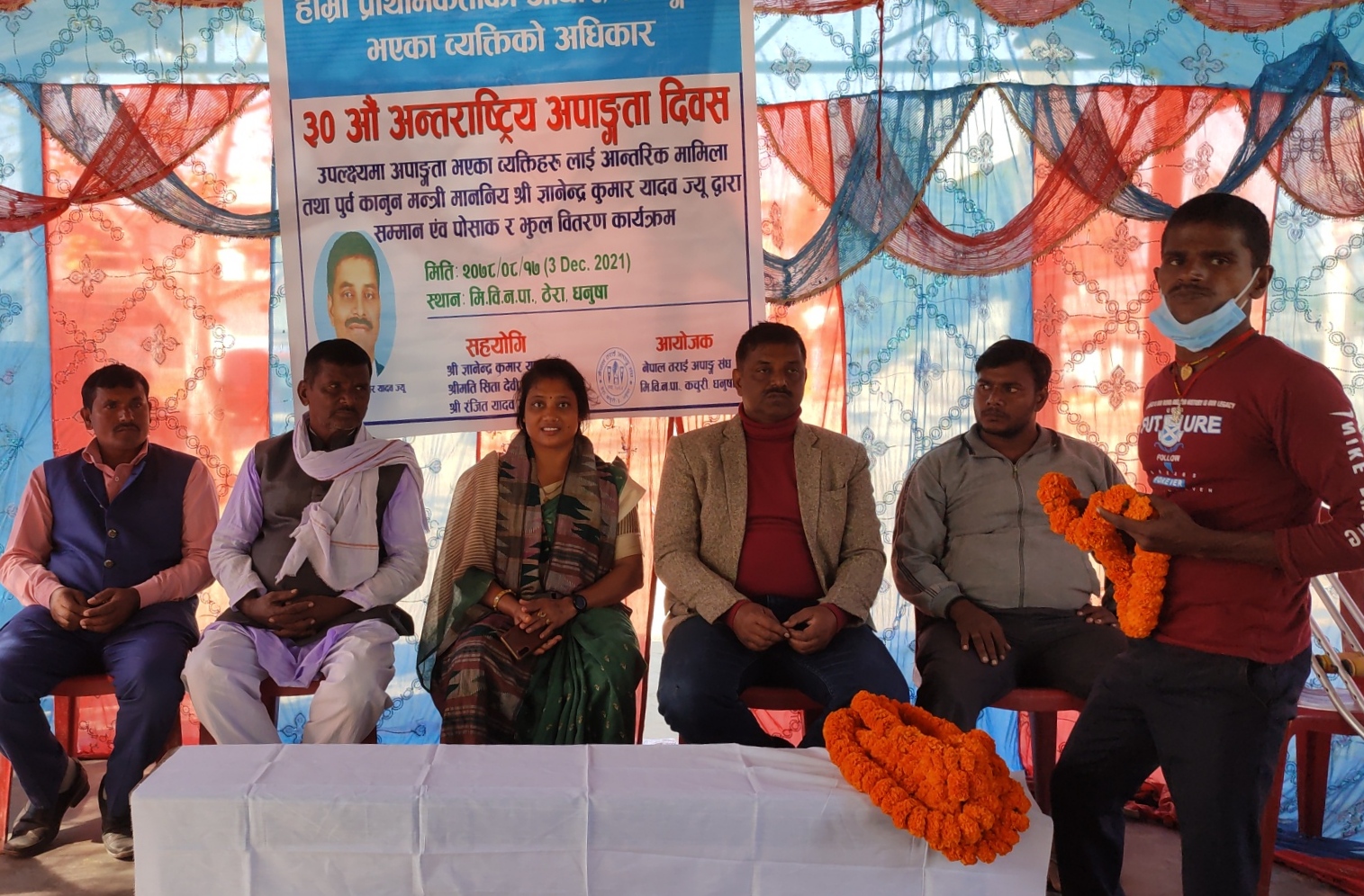 हाम्रो प्राथमिकताको आधार, अपाङ्ग भएका व्यक्तिको अधिकार नाराको साथ ३० औं अन्तराष्ट्रिय अपाङ्ग दिवस धनुषामा मनाईएको छ ।