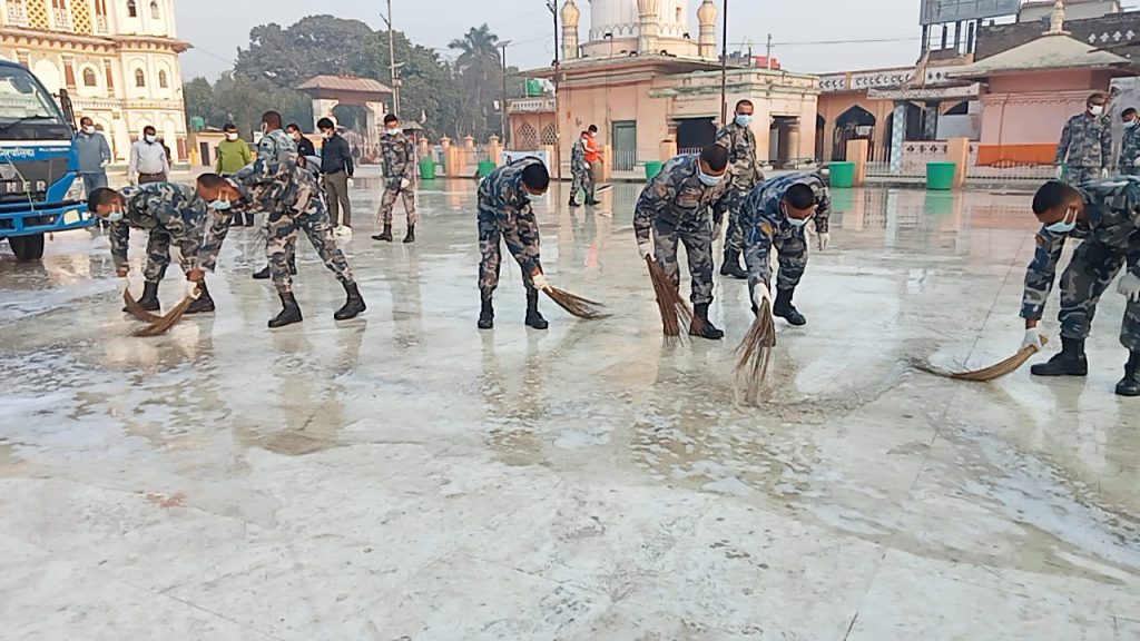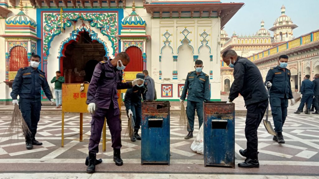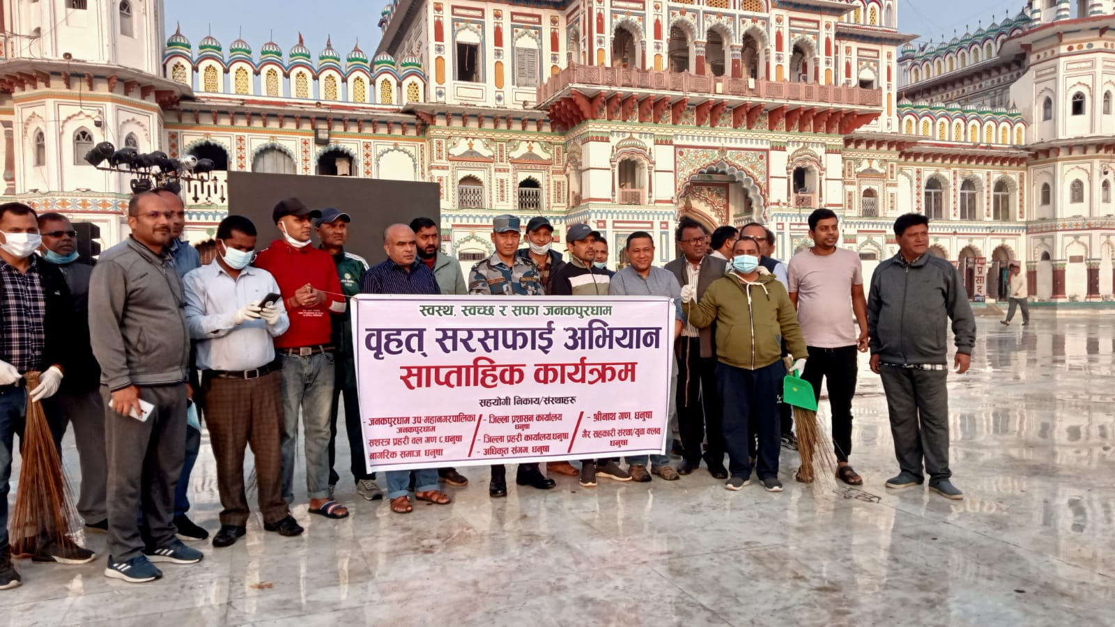 स्वस्थ, स्वच्छ र सफा जनकपुरधाम वृहत् सरसफाई अभियान साप्ताहिक कार्यक्रम अन्तर्गत दोस्रो साता शुक्रबार जानकी मन्दिर परिसर सफाई गरिएको हो ।