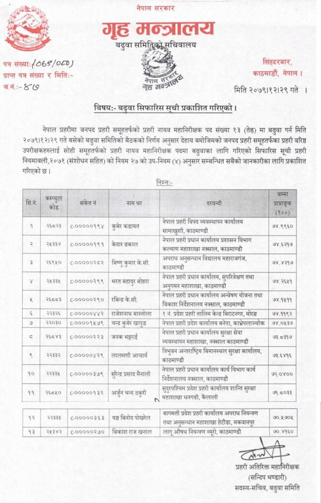 बढुवा सूचीमा सुरेन्द्रप्रसाद मैनाली, अर्जुन चन्द ठकुरी, यज्ञविनोद पोखरेल र विकासराज खनाल समेत छन् ।