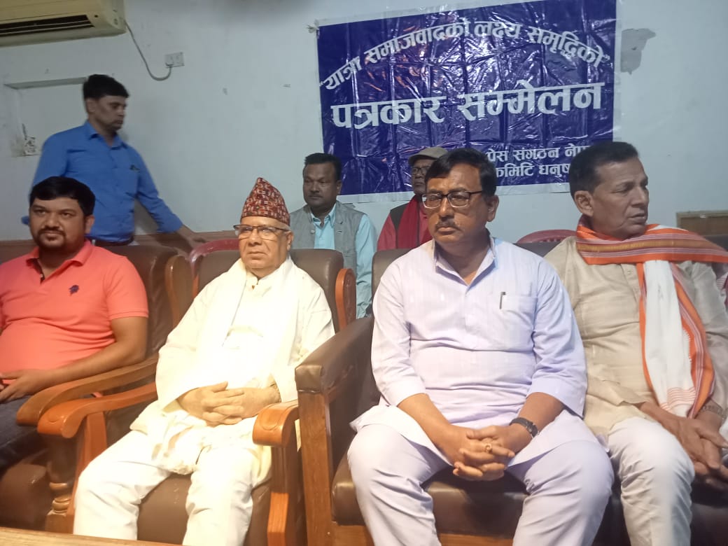 पत्रकार सम्मेलनमा समाजवादी पत्रकार संगठनका धनुषा अध्यक्ष अकुल प्रसाद साह, प्रदेश अध्यक्ष प्रविण साह, पार्टीका केन्द्रिय उपाध्यक्ष धर्मनाथ प्रसाद साह नेताहरु रामचन्द्र झा, सत्रुधन महतो, रामअवतार यादव, लाल गोइत, गोविन्द न्यौपाने, शितल झा, वृहतर जनकपुरधाम क्षेत्र विकास परिषदका अध्यक्ष शितल साह सहितको उपस्थिती थियो ।
